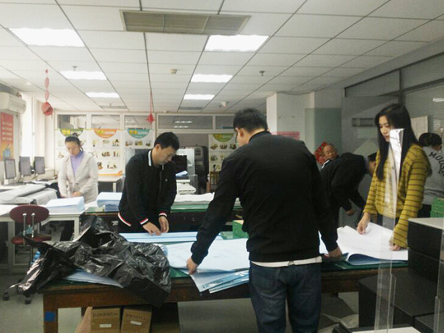 图一、首款数码蓝图机在文印室正式运行,面对新设备晒图组员工则把“迎接新挑战”落实在行动中,“十一”刚过,大家就投入了紧张的工作之中。